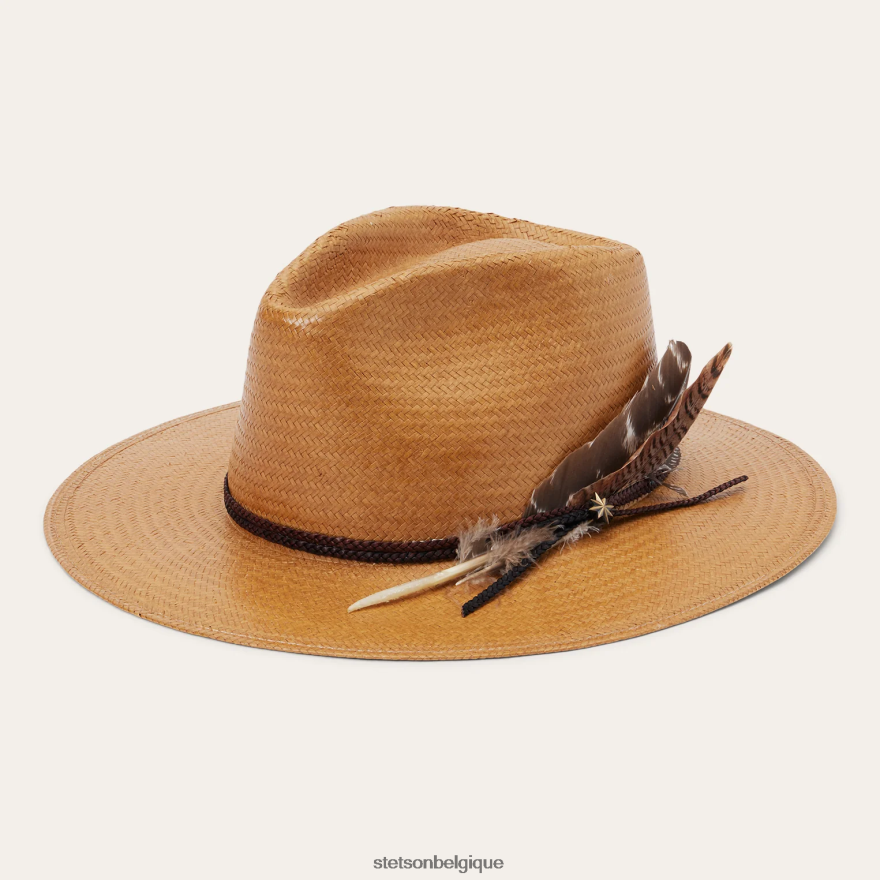 Le fedora en paille Juno est fabriqué avec une finition ferme à partir de paille 100 % shantung de haute qualité. Faisant partie de notre collection Seeker, il a une couronne en forme de larme de 4 1/4” et un bord plat surpassé de 3 1/4” complétés par une bande de chapeau en cuir tressé double couche avec des détails en plumes et une épingle en étoile. Non doublé, il a un Bandeau absorbant Dri-lex qui offre un confort toute la journée. fabriqués aux États-Unis, nos chapeaux de paille sont faits pour résister à l’épreuve du temps.