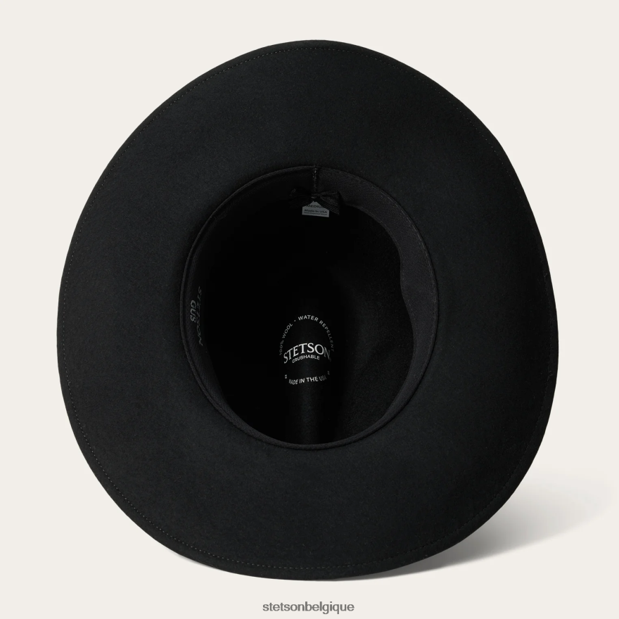 le chapeau d’extérieur écrasable Gus est fabriqué en feutre de laine écrasable et présente une forme de couronne Gus et une bande de chapeau en cuir torsadée. feutre de laine.