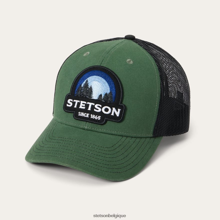 Cette casquette de camionneur classique présente un logo Stetson Sunset brodé aux couleurs vives. confectionné avec un devant en toile brossée robuste, il possède un dos en mesh pour la respirabilité et la ventilation, une visière légèrement incurvée et une fermeture classique à bouton-pression à l’arrière pour garantir un ajustement sûr et réglable.