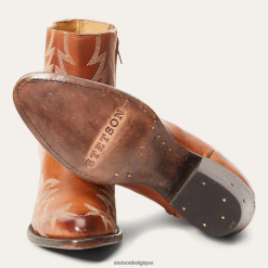 allez en ville avec un mélange de confiance et de style cow-girl. fabriqué à la main par les légendaires bottiers de Stetson à partir de cuir de première qualité conçu pour se patiner joliment au fil du temps. Les caractéristiques comprennent : une doublure entièrement en cuir, une semelle intérieure rembourrée, des clous en laiton de qualité supérieure et des piquets en bois de citronnier entraînés à la main qui permettent à la botte de résister aux éléments en se dilatant et en se contractant avec toute humidité que la botte peut rencontrer. chaque paire est fabriquée à la main pour garantir un confort et des performances absolus.