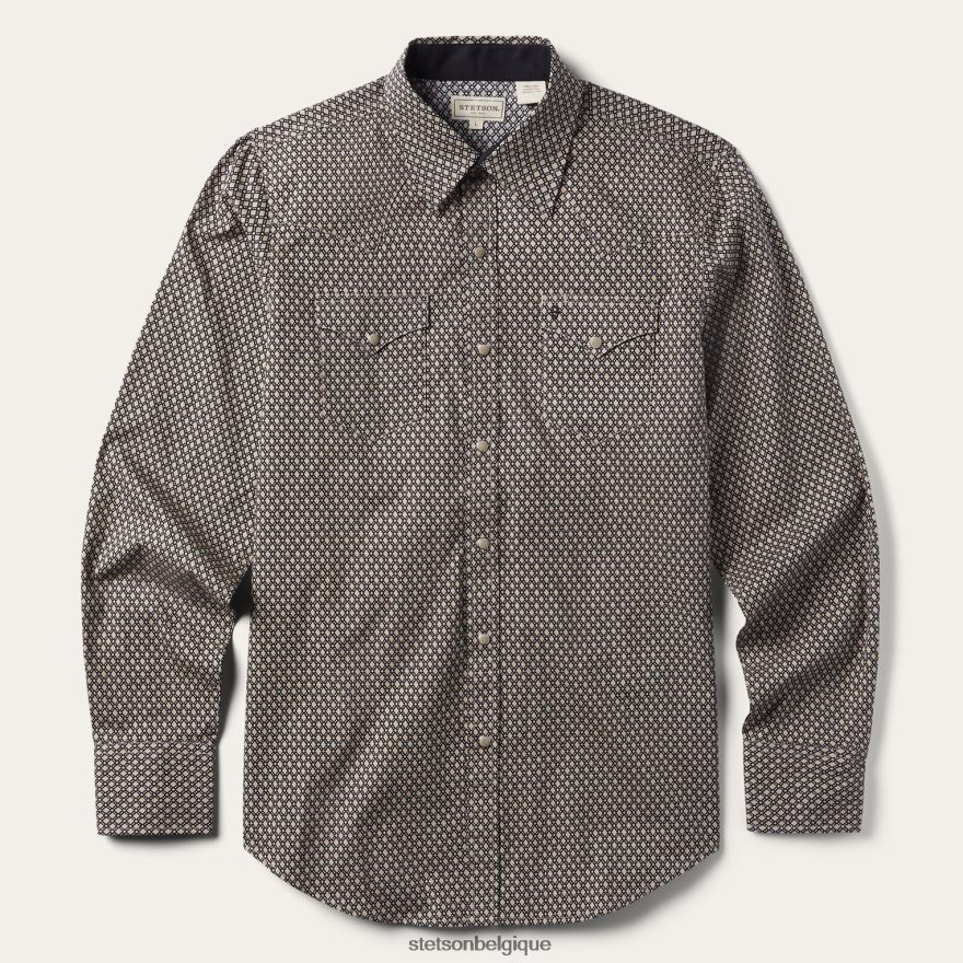 B4286D324 brun chemise western à imprimé losanges Stetson Hommes vêtements