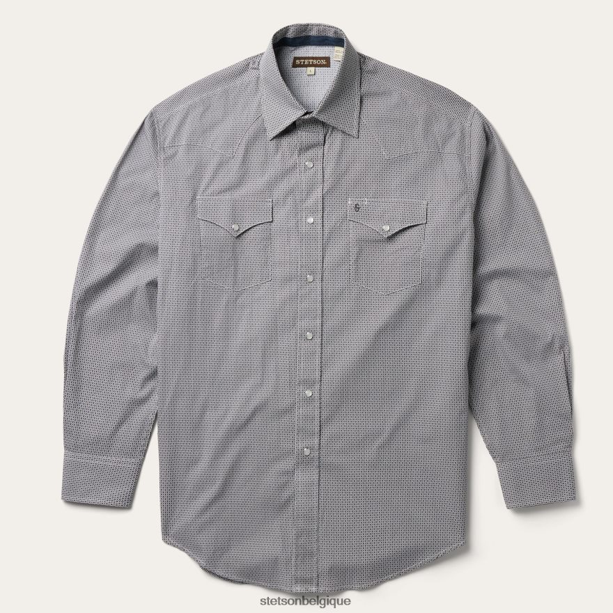 B4286D332 gris chemise western à imprimé géométrique Stetson Hommes vêtements