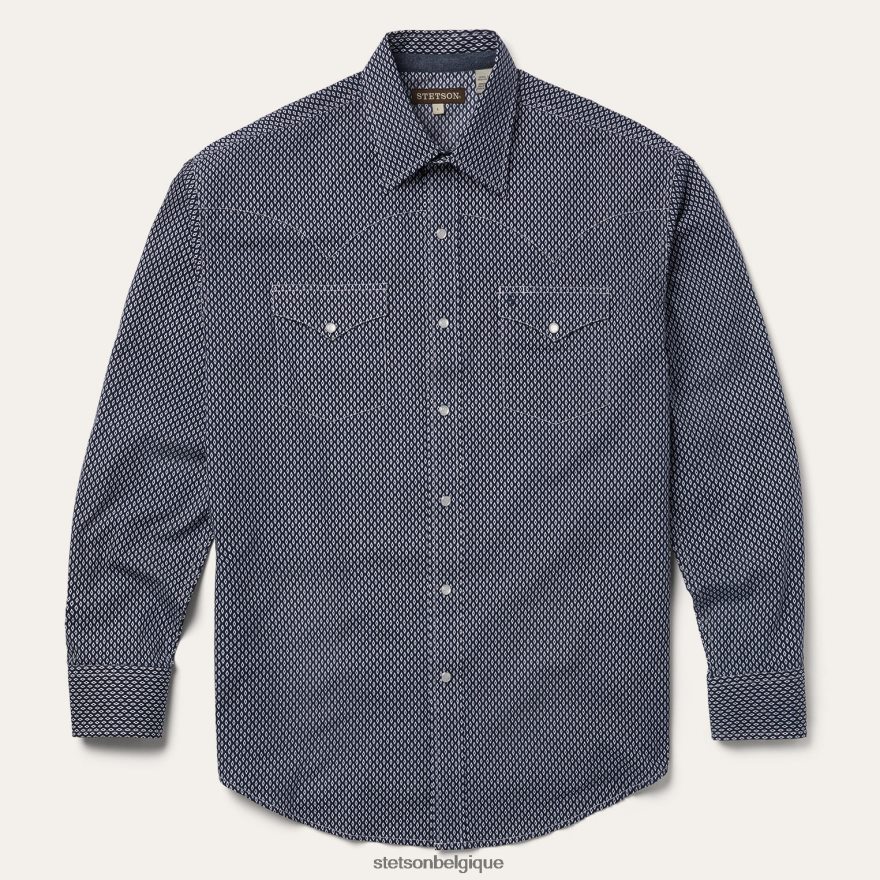 B4286D355 bleu chemise western géo diamant Stetson Hommes vêtements