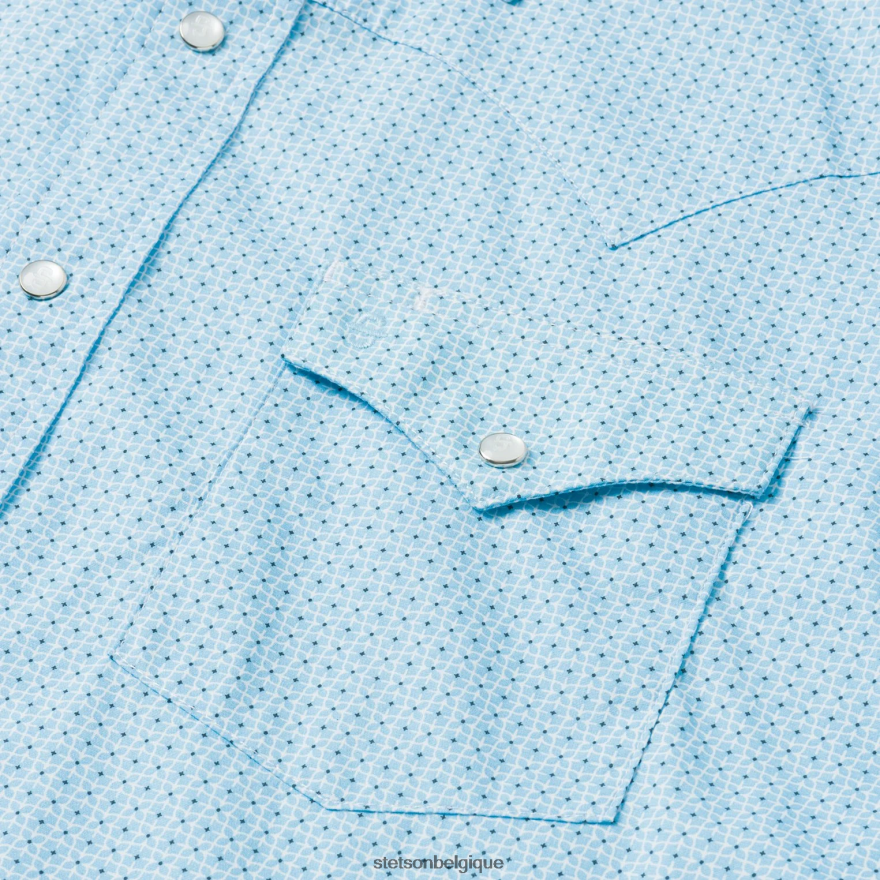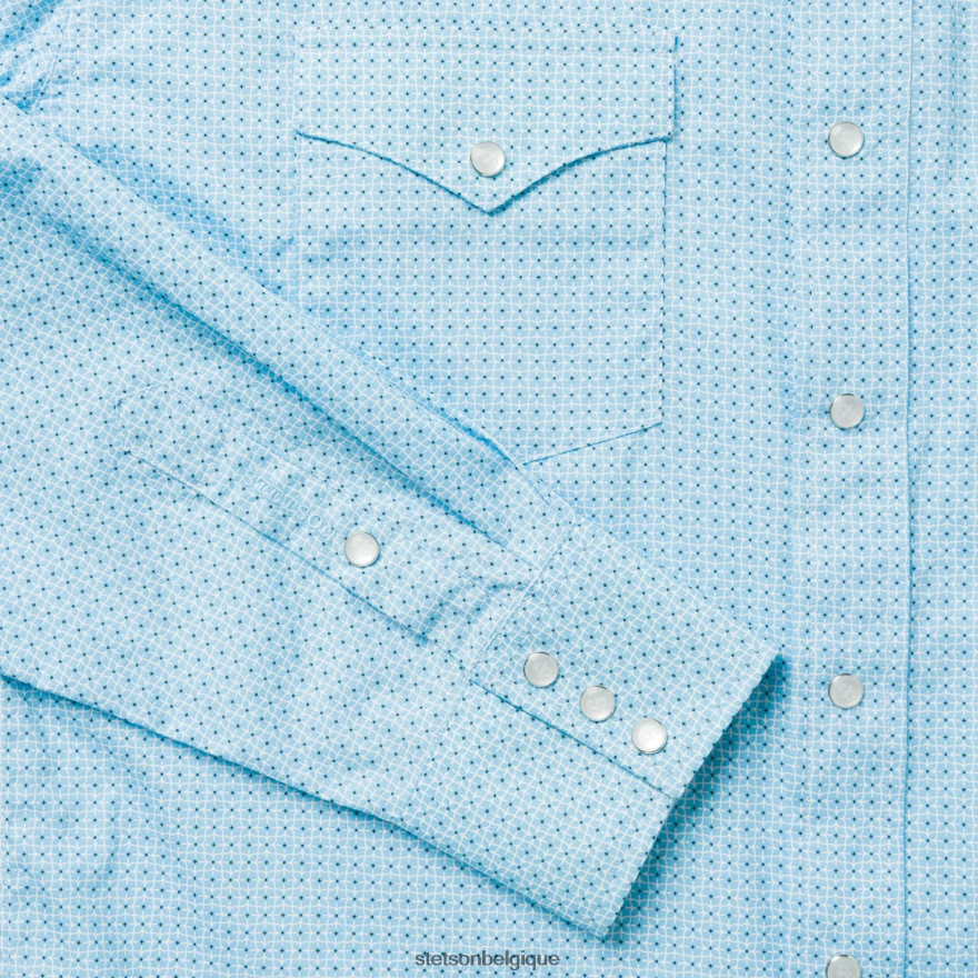 les détails western emblématiques incluent des boutons-pression de la marque Stetson sur le devant. patte de boutonnage, poignets et poches, ainsi qu’une broderie personnalisée sur la poitrine et le poignet droit. Extrêmement durable et toujours confortable, c’est un essentiel en toutes occasions.