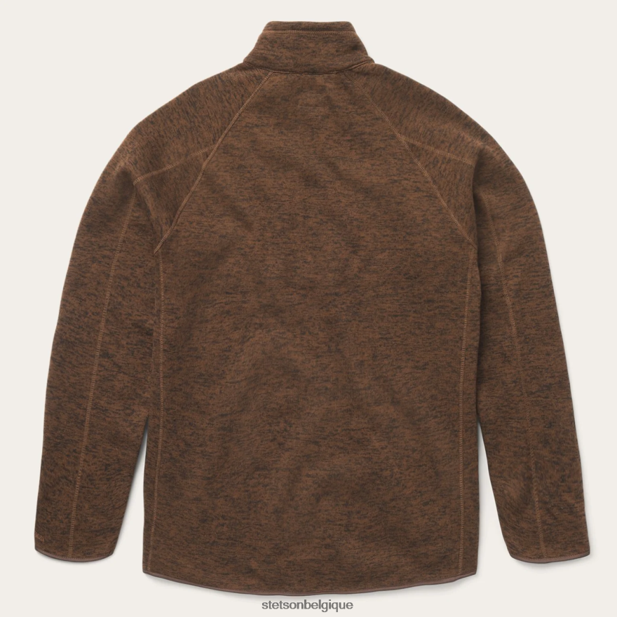 Le pull en tricot contrecollé présente une encolure zippée sur le devant, une bordure intérieure en microfibre et un empiècement arrière cousu en un point.