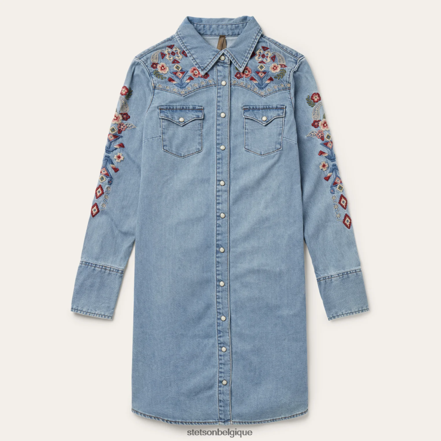 B4286D445 bleu robe-chemise en jean brodée Stetson femmes vêtements