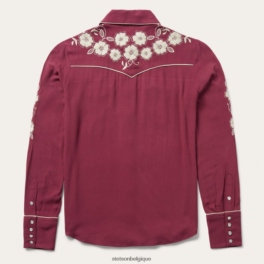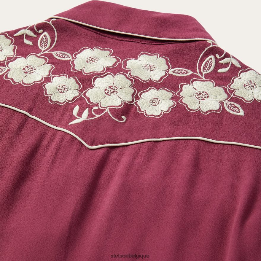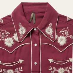 Cette chemise western à bouton-pression est fabriquée en crêpe de rayonne extrêmement doux et comporte un empiècement avant et arrière en un seul point, un col surdimensionné avec passepoil et des poches souriantes pour compléter un look western moderne qui convient parfaitement au ranch. ou en ville.