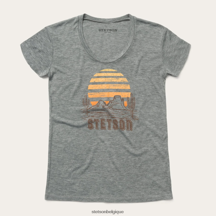 B4286D470 gris t-shirt graphique coucher de soleil Stetson femmes vêtements