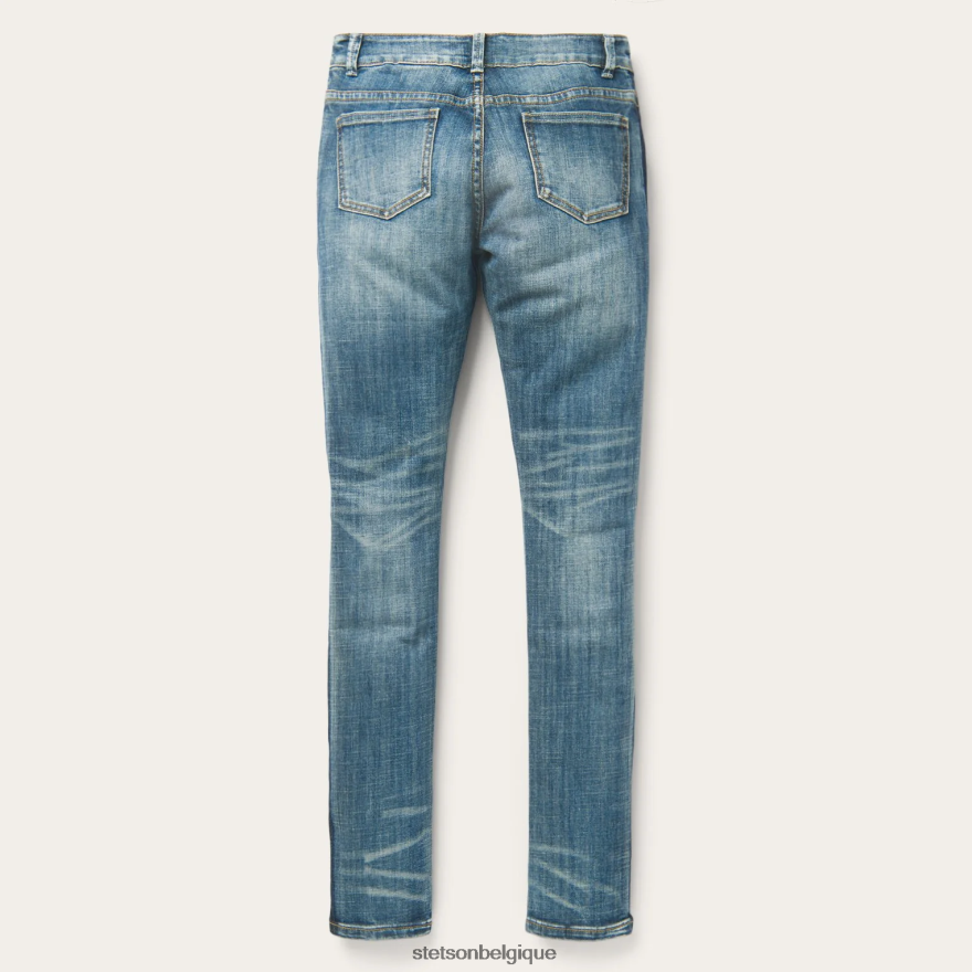 les détails incluent de subtiles poches arrière, des rayures latérales, des moustaches et un fondu légèrement poncé à la main pour une sensation portée parfaite. le look complet est complété par du matériel personnalisé de marque Stetson. Conçu pour avoir fière allure, bien ajusté et travailler dur, le style soigné de ces jeans western est fait pour les femmes avec un esprit indépendant et un amour de l’artisanat traditionnel.