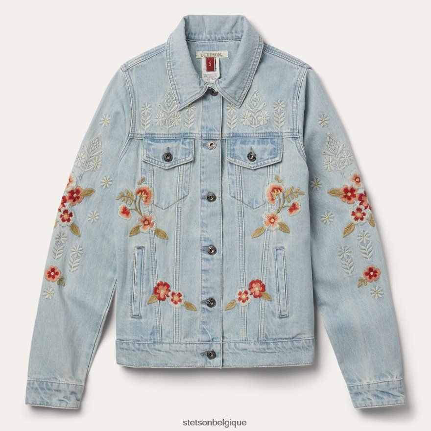 B4286D536 bleu veste en jean brodée Stetson femmes vêtements
