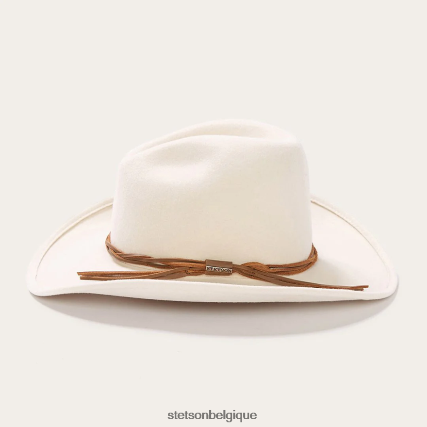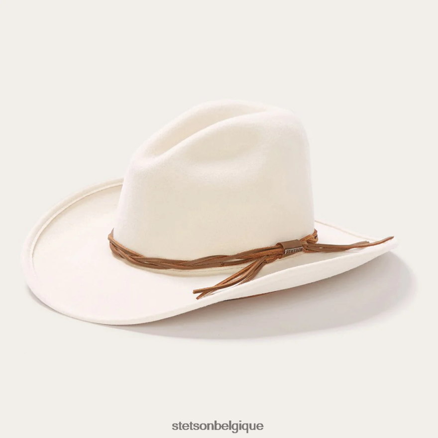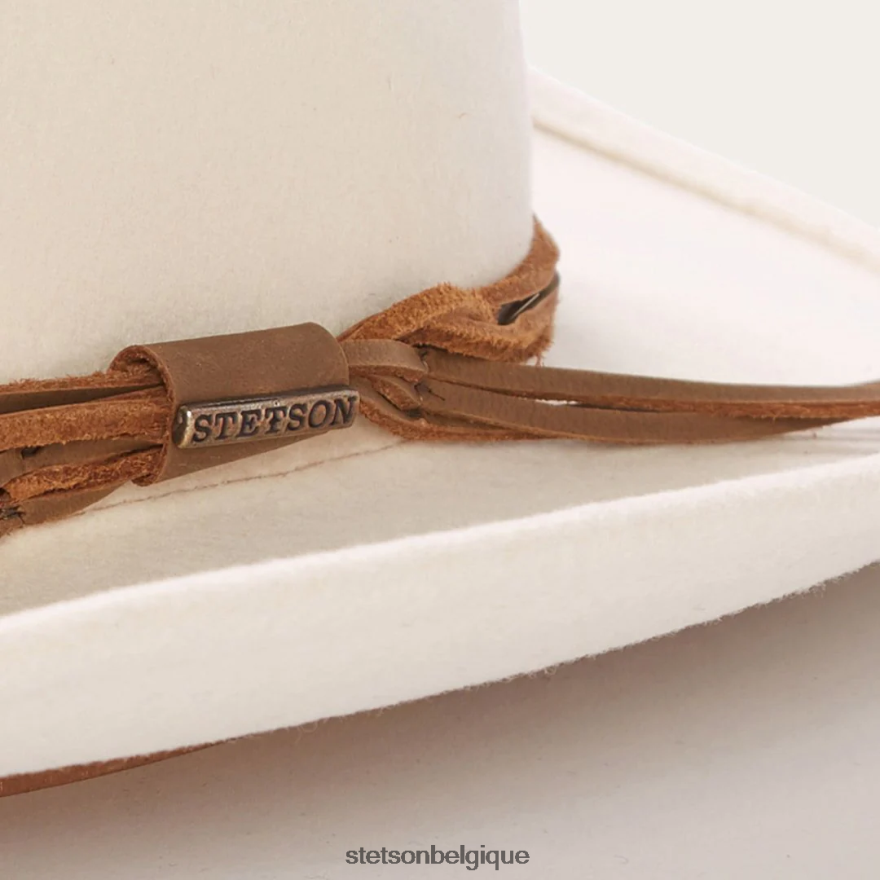le chapeau d’extérieur écrasable Gus est fabriqué en feutre de laine écrasable et présente une forme de couronne Gus et une bande de chapeau en cuir torsadée. feutre de laine.