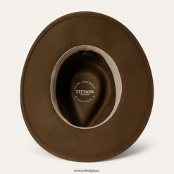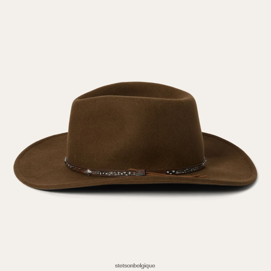 élégant, durable et idéal pour toute aventure, ce chapeau australien en feutre de laine robuste est fabriqué aux États-Unis à partir de feutre de laine résistant à l’eau de haute qualité. il est également complètement écrasable, ce qui signifie qu’il peut facilement être enroulé et emballé dans un sac tout en conservant sa forme. le bord incurvé sous la passepoil de 3 1/2” offre la protection nécessaire par tous les temps et un bandeau absorbant Dri-lex respirant assure un confort à porter toute la journée. le bandeau de chapeau en cuir artisanal comprend une plume pressée et un accent concho en forme de losange, une épingle avec logo Stetson et est fini avec une épingle de chapeau Stetson et des queues de cordon.