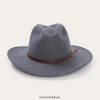 le chapeau d’extérieur écrasable Gus est fabriqué en feutre de laine écrasable et présente une forme de couronne Gus et une bande de chapeau en cuir torsadée. feutre de laine.