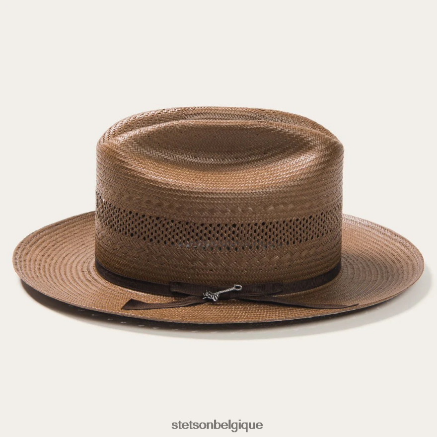 B4286D23 chocolat chapeau de cowboy en paille ventilée pour route ouverte Stetson unisexe couvre-chefs