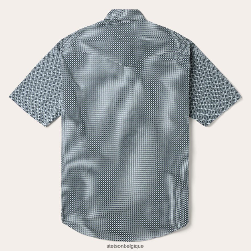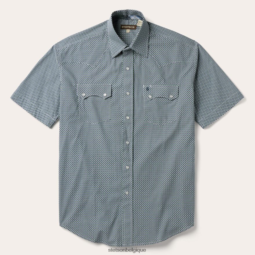 B4286D305 vert chemise western à manches courtes et imprimé losanges Stetson Hommes vêtements