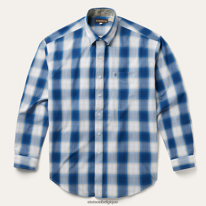 Cette élégante chemise à manches courtes est confectionnée en 100 % coton et présente un riche plaid hombre teint en fil bleu marine et or avec un point satin accrocheur. il a un empiècement arrière droit avec pli, le « s » stetson en relief sur la poche avant gauche, « stetson » en relief sur la patte de boutonnage de la manche droite et une bordure intérieure contrastée qui offre un contraste subtil. Le devant boutonné classique comporte un logo. boutons de perles empilés, tandis que les poignets à bord en onglet à deux boutons peuvent être ajustés pour l’ajustement souhaité.