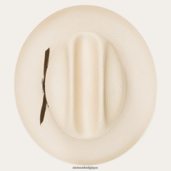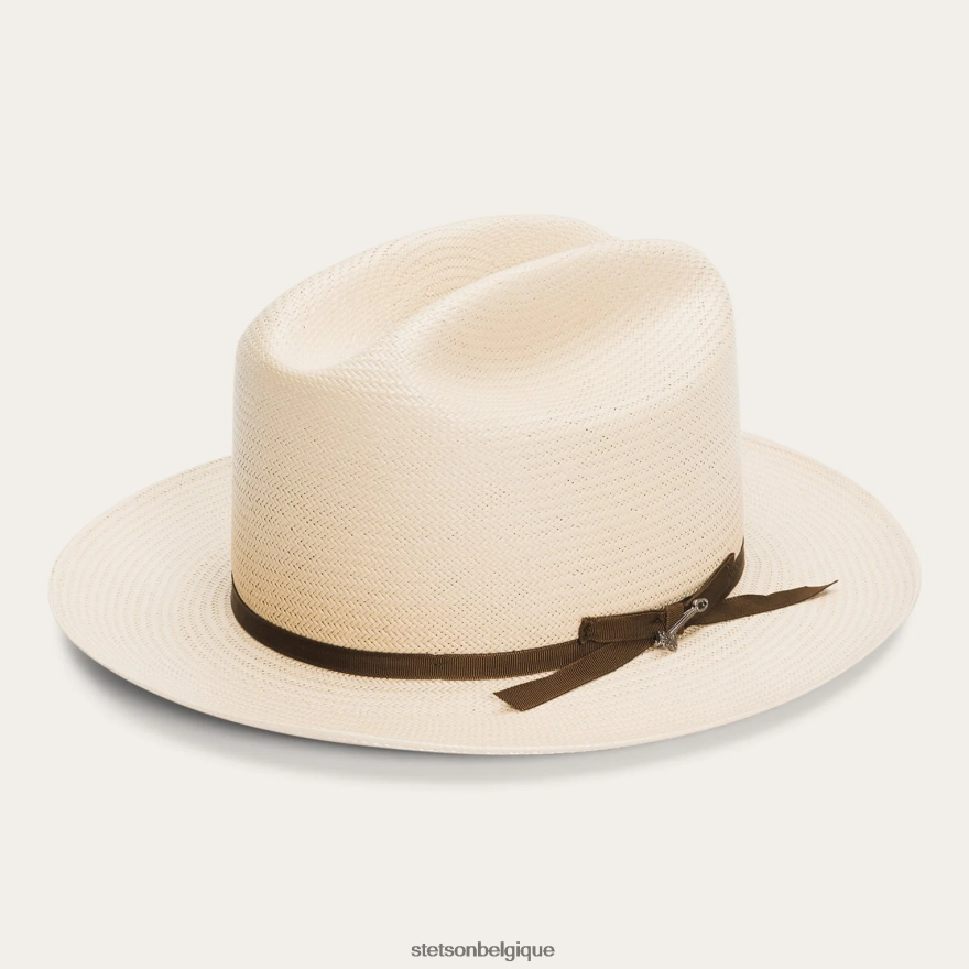 la paille pour route ouverte comprend un bandeau en cuir véritable et une couronne de 4 1/4” équipée d’un bandeau en satin.