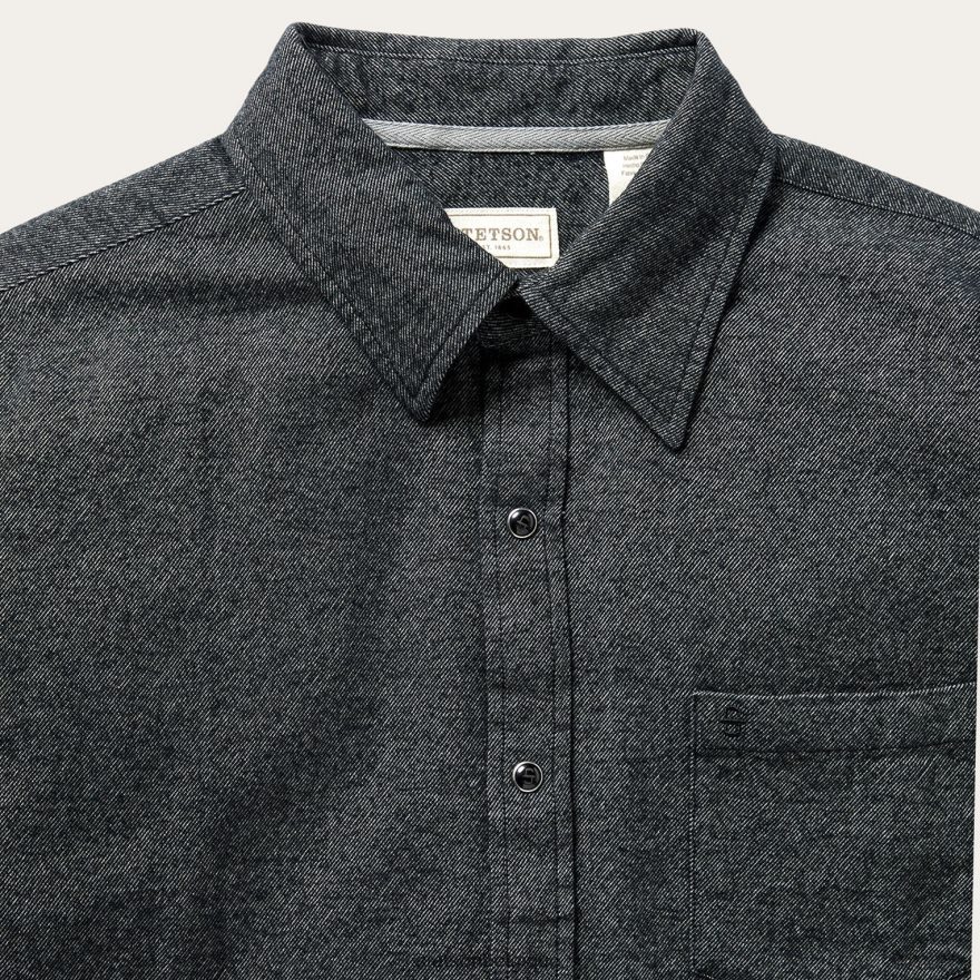 les détails western emblématiques incluent des boutons-pression de la marque Stetson sur la patte de boutonnage avant, les poignets et les poches, ainsi qu’une broderie personnalisée sur la poitrine et le poignet droit. extrêmement durable et toujours confortable, c’est un indispensable en toutes occasions.