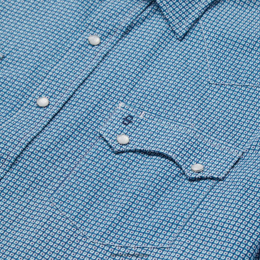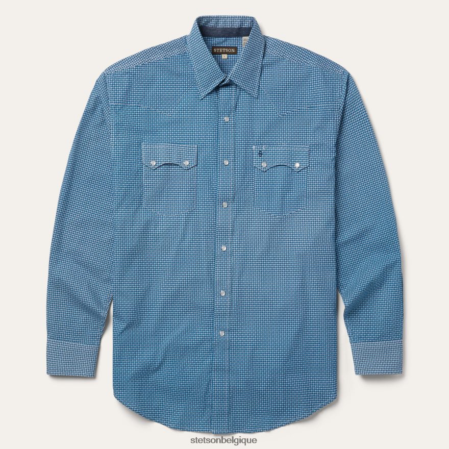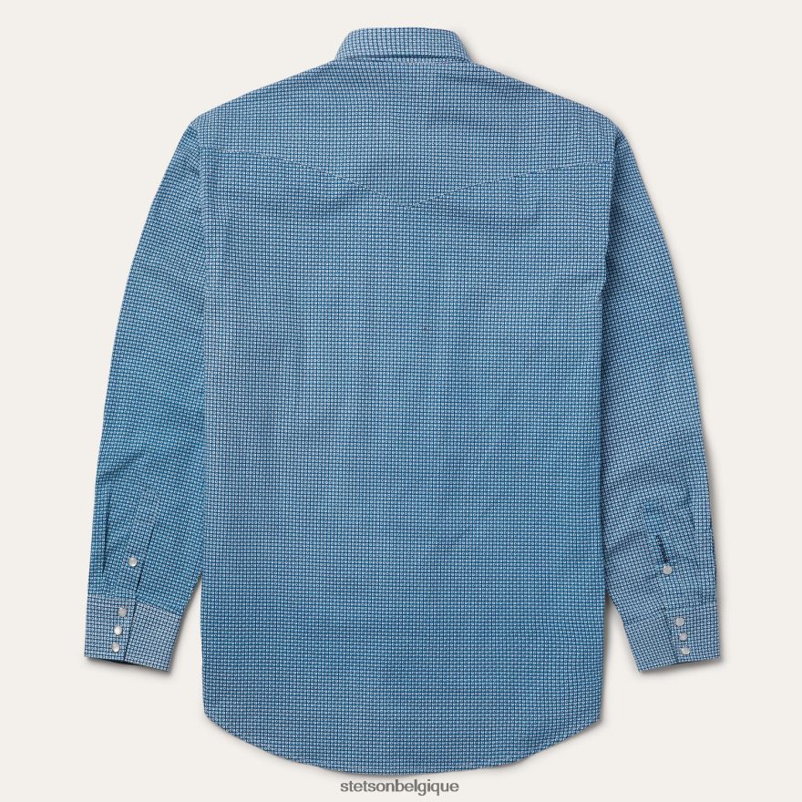 B4286D351 bleu chemise western à micro imprimé Stetson Hommes vêtements