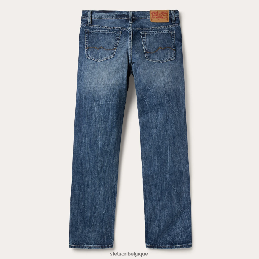 ce jean droit standard de coupe 1520 est confectionné en denim 100 % coton avec un délavage bleu moyen. Doté d’une taille mi-haute et d’une cuisse décontractée, le genou ample et l’ouverture de jambe bootcut légèrement effilée créent une silhouette moderne. le style classique à 5 poches comprend des boutons, des rivets et une fermeture éclair de la marque Stetson, ainsi qu’une couture en forme de « V » western sur la poche arrière. Des touches de finition, comme le ponçage à la main et les détails de meulage, complètent le jean pour un look parfaitement porté.