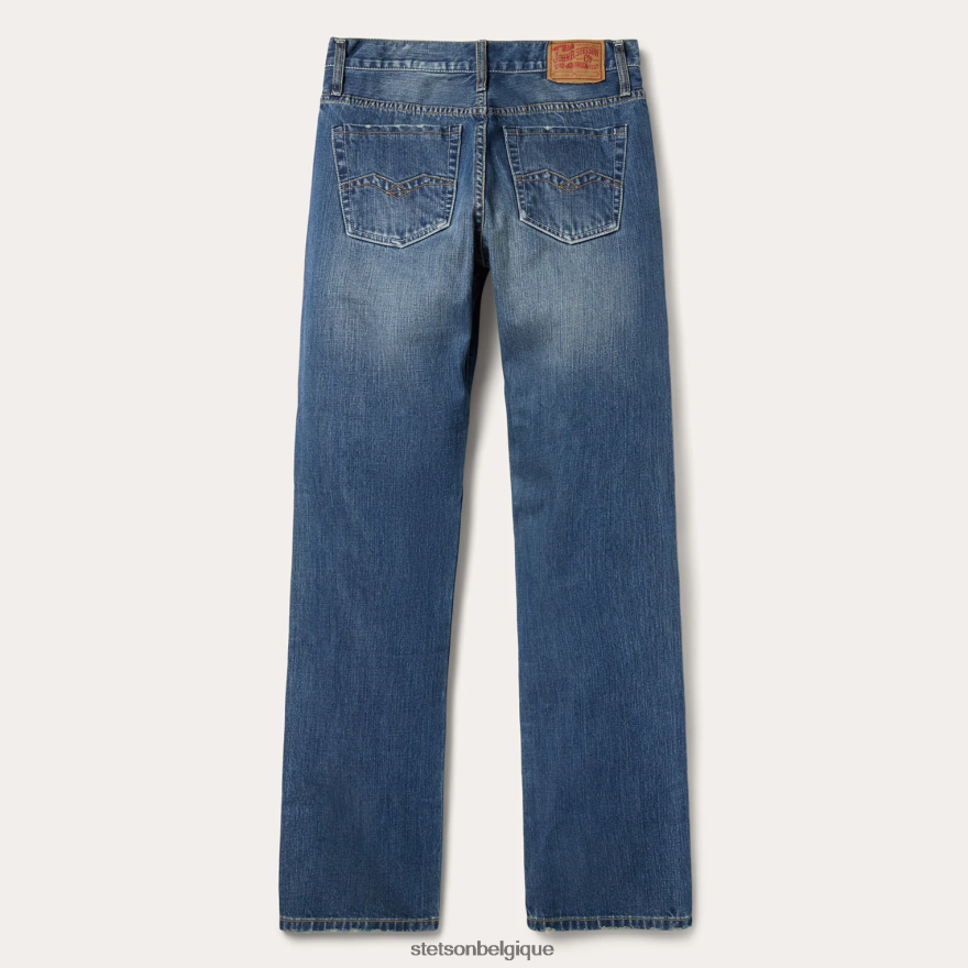 ce jean 1312 à la coupe moderne est confectionné en denim 100 % coton avec un délavage bleu moyen. Doté d’une taille légèrement inférieure, d’une cuisse décontractée et d’une ouverture de jambe bootcut, le style classique à 5 poches présente une décoration de montagne abstraite sur les poches arrière, ainsi que des boutons, des rivets et une fermeture éclair de la marque Stetson. Des touches de finition, comme le ponçage à la main et les détails de moustaches, complètent le jean pour un look parfaitement porté.