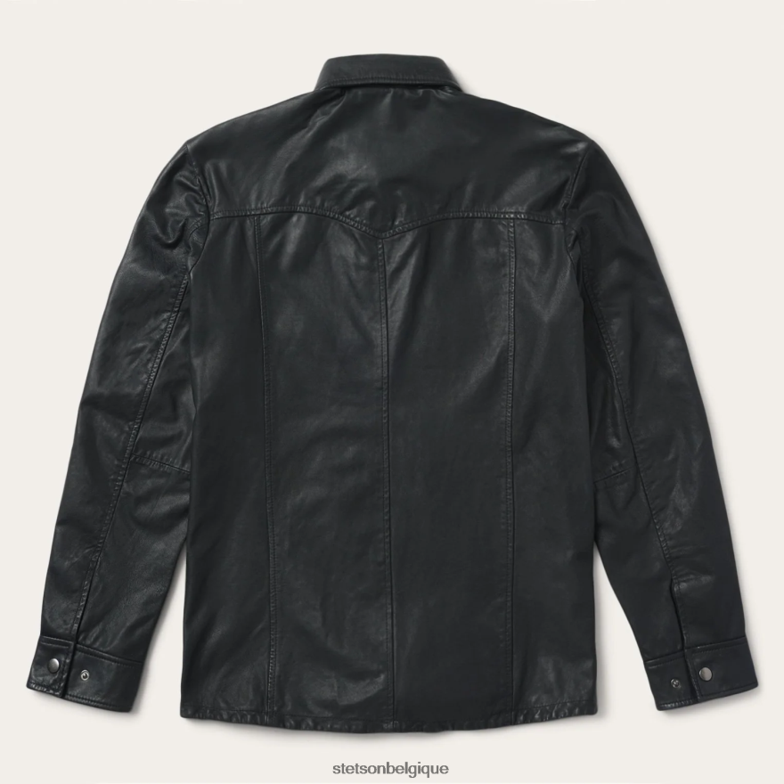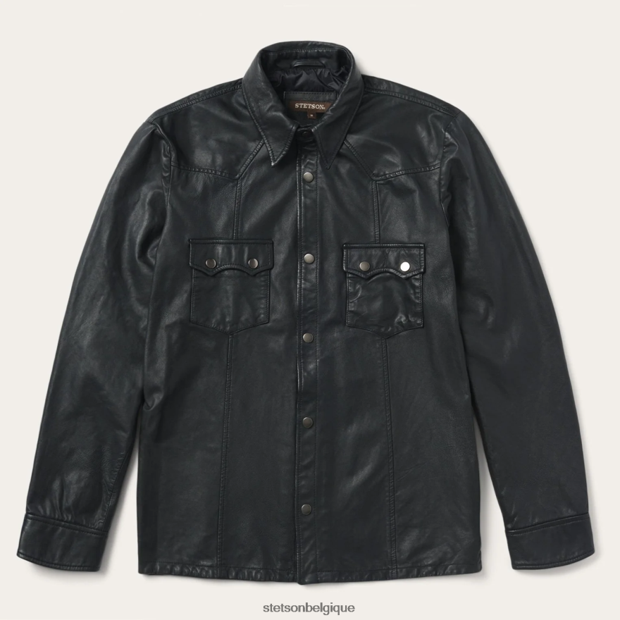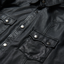 Ce jac-shirt en cuir pratique est fiable en cas de besoin, que le vent se lève ou qu’une légère pluie tombe. il est doté d’empiècements à un seul point sur le devant et au dos, de boutons-pression argentés antiques sur la patte de boutonnage et les poches, et est doublé sur la poitrine et les épaules.