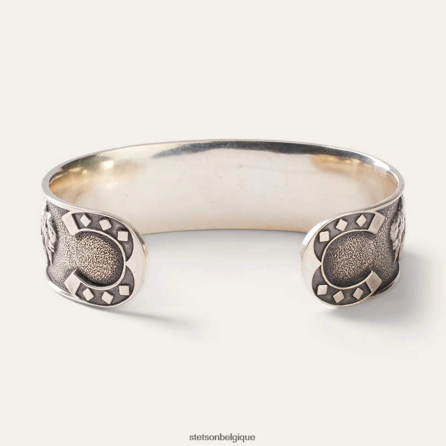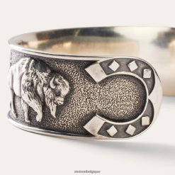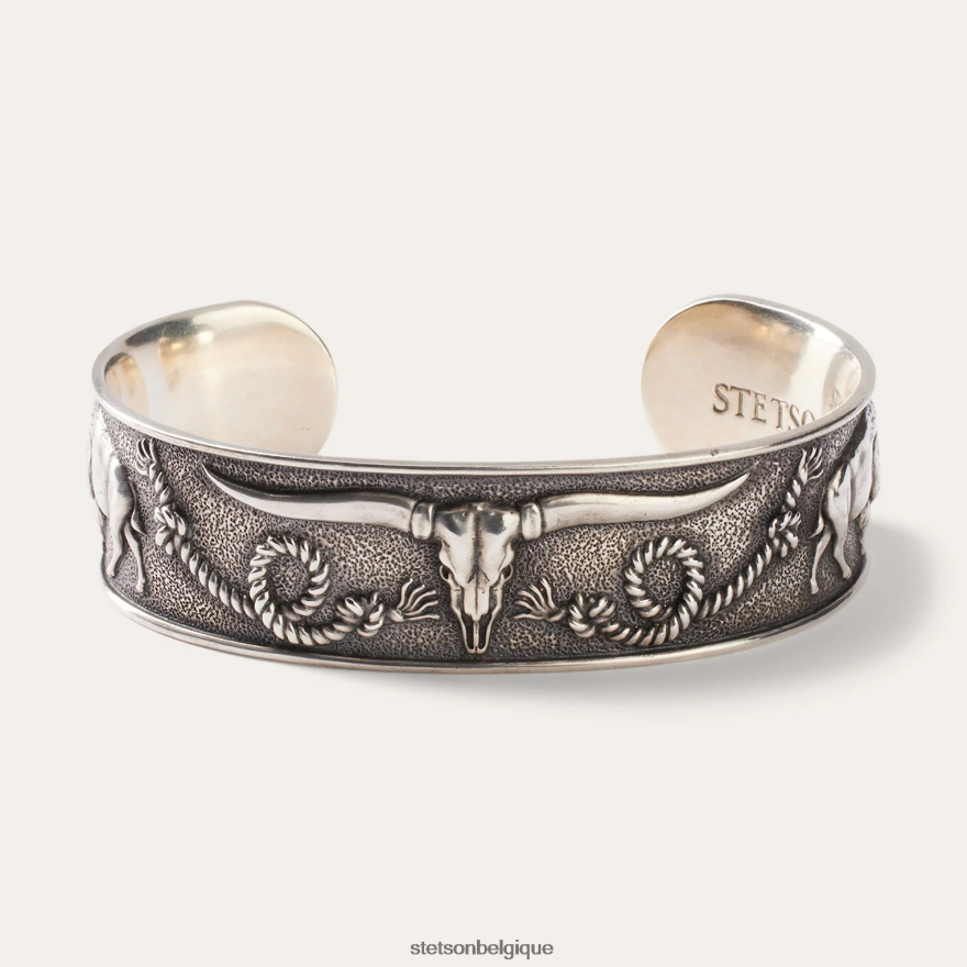 des motifs americana classiques décorent ce brassard d’inspiration sud-ouest. le crâne d’un longhorn se trouve à l’avant et au centre de la face du brassard, flanqué de cordes nouées, de buffles et de fers à cheval. Véritablement ornée, cette manchette capture tous les éléments emblématiques de l’esprit robuste du sud-ouest. portez-le seul ou superposez-le à d’autres pièces pour un look classique.