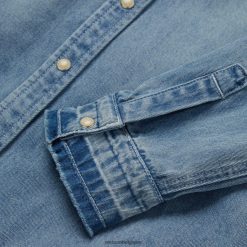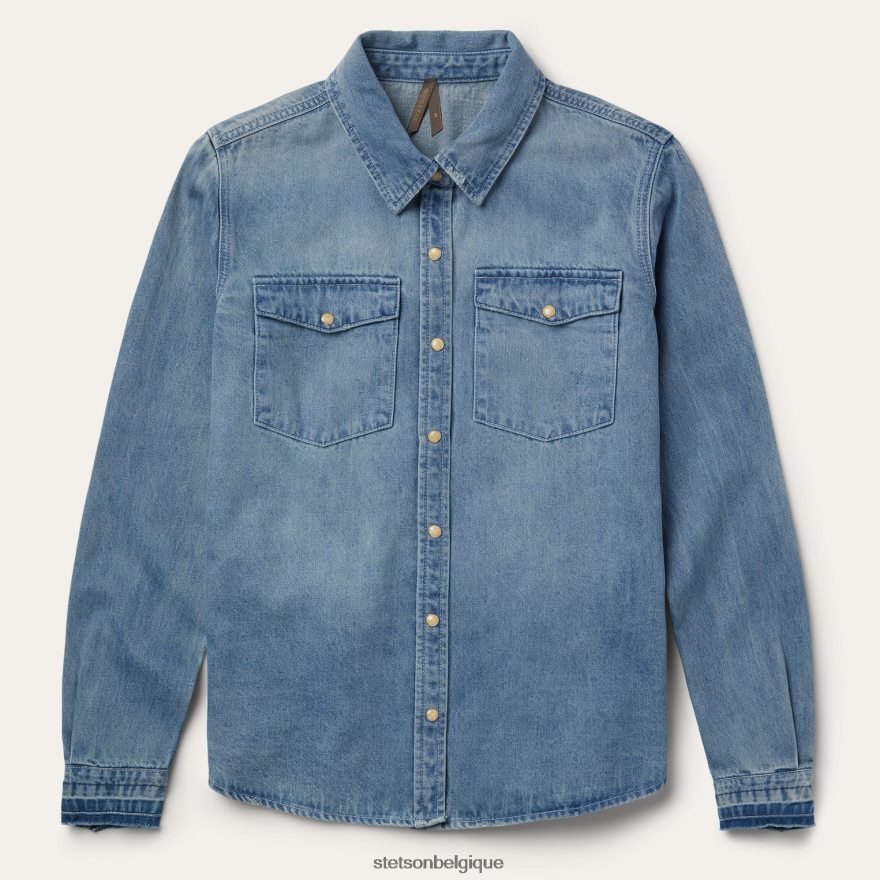 B4286D437 bleu chemise ample en jean à boutons-pression Stetson femmes vêtements