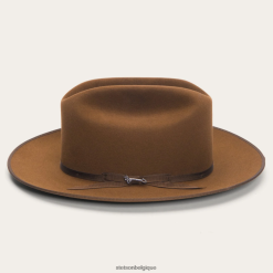 l’open road royal deluxe comprend un sweat en cuir rouantband et une couronne de 4 1/4” équipée d’un bandeau de chapeau en gros-grain et d’une épingle à chapeau en fer portant les initiales” jbs”, un clin d’œil à notre fondateur, john b. stetson, dont l’héritage pionnier se perpétue dans chaque chapeau que nous vendons.