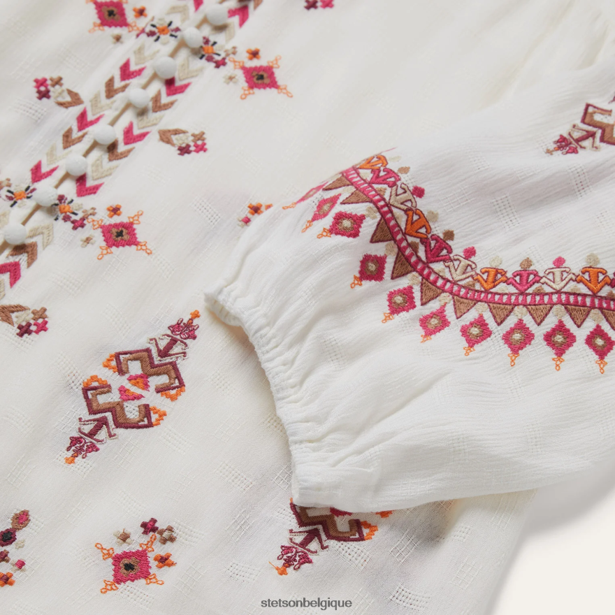 ce haut offre une silhouette douce et fluide avec des détails brodés bohèmes, y compris des boutons subtilement cachés sur le devant. un choix décontracté pour un brunch, un festival de musique ou partout où la saison vous emmène.