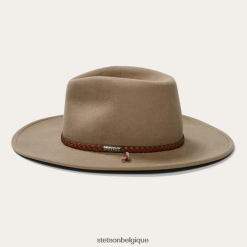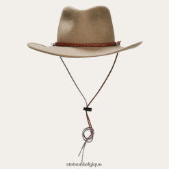 le chapeau d’extérieur sagebrush est fabriqué en feutre de laine écrasable et comporte une couronne pincée sur le devant, une bande de chapeau en cuir tressé et une mentonnière en cuir réglable.