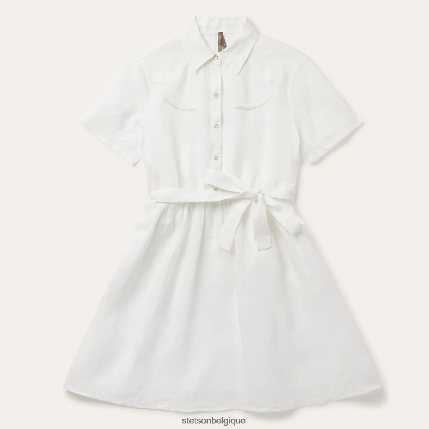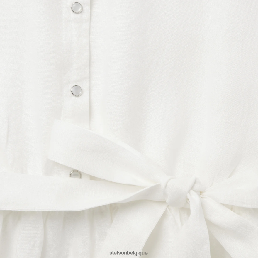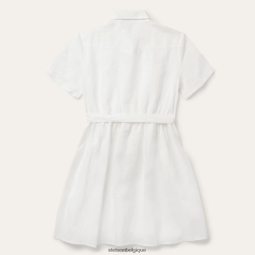 cette robe chemise blanche à rayures ton sur ton est confectionnée en 100 % lin de haute qualité. il présente des manches courtes, une encolure avec boutons-pression, une taille élastique et une ceinture à nouer dans le même tissu pour une coupe flatteuse. les empiècements avant et arrière à point unique et les poches souriantes ajoutent une touche classique d’inspiration western, tandis que l’intérieur partiellement doublé offre structure et couverture tout en le gardant léger. parfait pour toutes les occasions par temps chaud, son style polyvalent en fera un favori rapide.