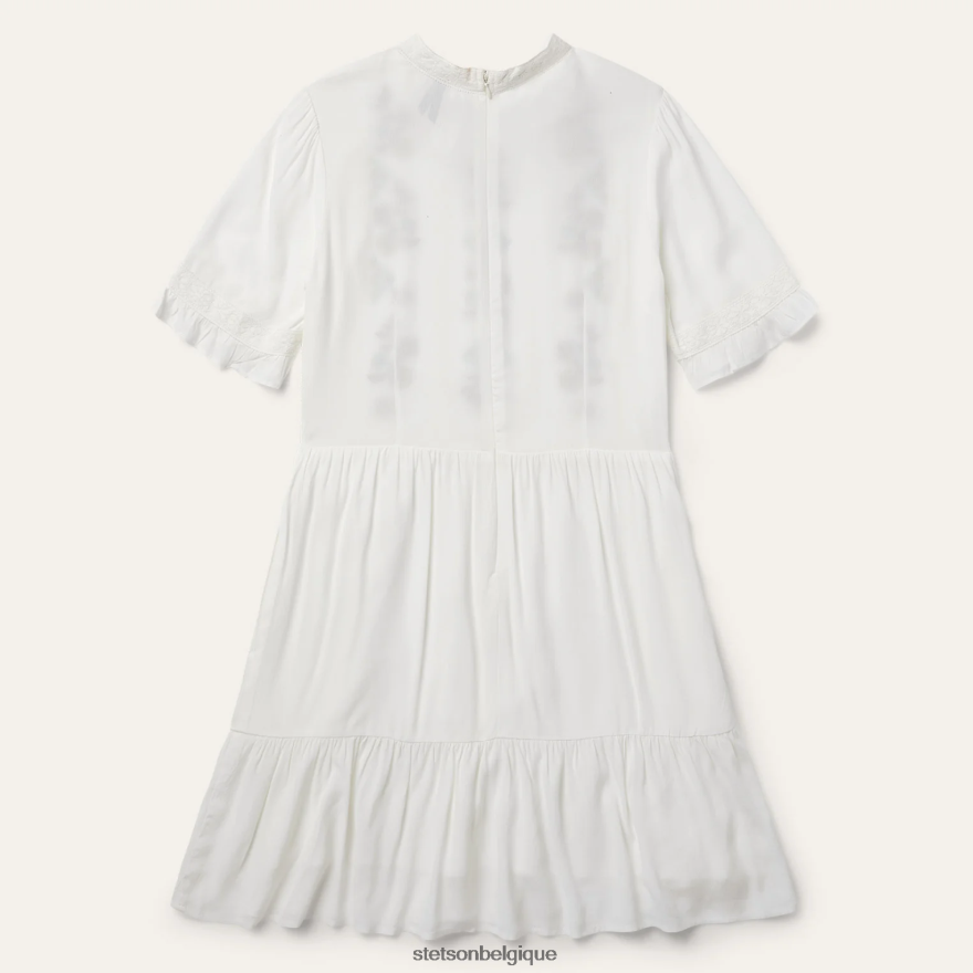 cette robe douce et fluide associe une broderie western à une silhouette bohème. fini avec des détails charmants comme des volants sur les manches et des empiècements en dentelle, ainsi que des poches pour plus d’utilité.