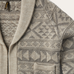 ce cardigan court élégant présente un imprimé d’inspiration aztèque aux tons neutres et est fait d’un mélange de laine confortable, parfait lorsque les températures baissent. il présente des côtes au col châle, aux poignets et à l’ourlet, ainsi que deux poches plaquées sur le devant pour plus de commodité. facilement associé à un jean et des bottes, il confère également une touche de style sud-ouest à n’importe quelle robe.