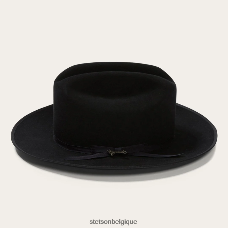 Introduite en 1937, la route ouverte était à l’origine vendue avec une couronne ouverte, qui pouvait puis être plié au goût du client. depuis 1948, il est orné d’un pli d’éleveur traditionnel pressé à la main et est depuis lors porté par les pionniers et les pionniers modernes, des artistes et hors-la-loi aux présidents (y compris, plus particulièrement, LBJ, qui était rarement photographié sur son texas ranch sans sa route ouverte).