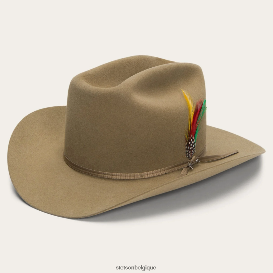 le chapeau de cowboy de la gamme 6x est fabriqué en feutre de fourrure de qualité 6x et comporte une couronne d’éleveur régulière et une bande de chapeau en cordon à 2 épaisseurs avec plume. Feutre de fourrure de qualité 6x. fabriqué aux États-Unis.