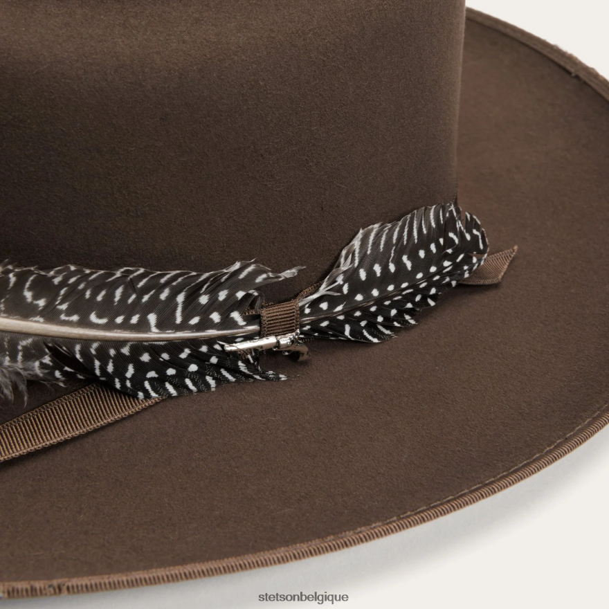 le 1865 open road royal deluxe en détresse comprend un bandeau en cuir véritable et une couronne de 4 1/4” équipée d’un bandeau en gros-grain, d’un détail de plume accrocheur et d’un une épingle à chapeau rend hommage à Stetson’s WesterUn héritage et un clin d’œil à l’esprit pionnier qui perdure dans chaque chapeau que nous vendons.