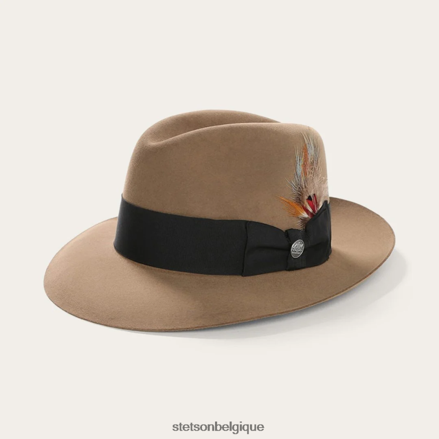 un clin d’œil aux bars de jazz des années 1940 à New York. icône à part entière, le temple est une déclaration de style distinctif. fabriqué à partir de feutre de qualité, il comporte une couronne avant pincée au centre et une large bande de chapeau en ruban gros-grain joliment compensée par un accent de plume audacieux. à l’intérieur, un bandeau en cuir rouan et une doublure en satin estampillée de la marque Stetson complètent le tout.