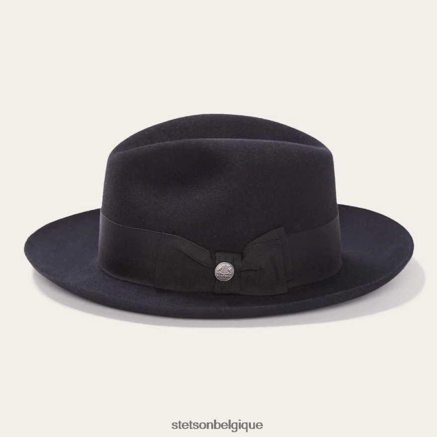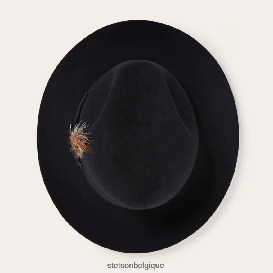 un clin d’œil aux bars de jazz des années 1940 à New York. icône à part entière, le temple est une déclaration de style distinctif. fabriqué à partir de feutre de qualité, il comporte une couronne avant pincée au centre et une large bande de chapeau en ruban gros-grain joliment compensée par un accent de plume audacieux. à l’intérieur, un bandeau en cuir rouan et une doublure en satin estampillée de la marque Stetson complètent le tout.